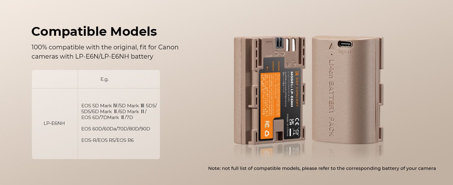 Quốc gia vận chuyển: Mỹ/Anh/Canada/EU,Pin thay thế thay thế LP-E6NH LP-E6N LP-E6, pin này hoàn toàn tương thích với Canon EOS R5/EOS R6/EOS R/EOS 80D/ 90D/ 70D / 60D/ 5D Mark II/ Mark III/ Mark IV/ 6D/ 5DS / 5DS R/ XC10/ XC15