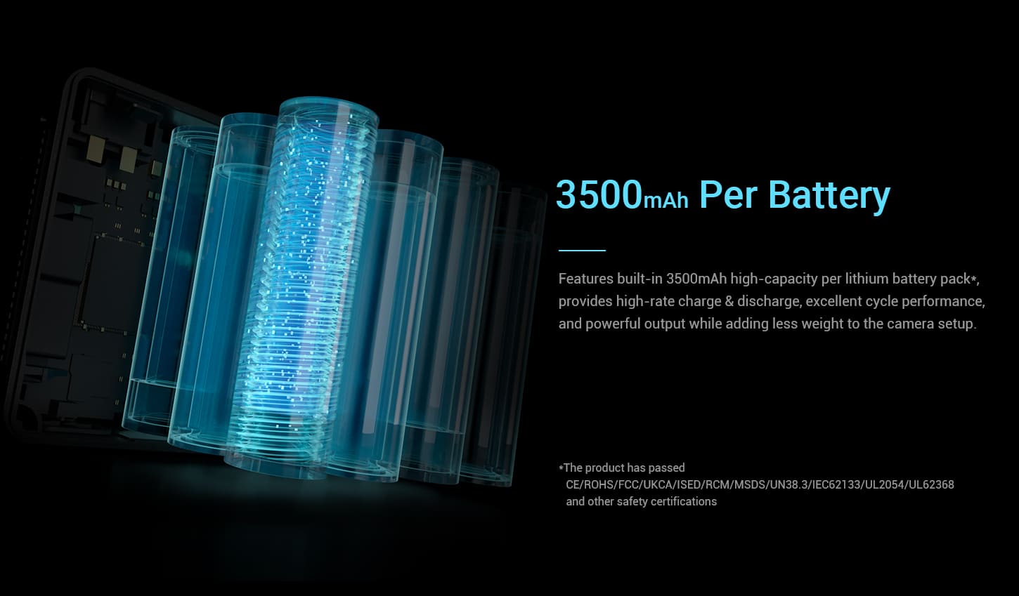 Pin VB99 mini V Mount có kích thước bằng 70% so với pin V-mount thông thường, nhờ thiết kế tích hợp cao, chiếm ít không gian hơn, làm cho nó nhẹ hơn và di động hơn! Chip BMS tích hợp cao (chip giao thức sạc nhanh + MCU + điều khiển tăng điện áp) hỗ trợ một loạt các giao thức sạc nhanh chủ đạo (PD / QC / SCP / PPS / APPLE-2.4A, v.v.), hai chiều 65W (Tối đa) Sạc nhanh USB-C PD, cũng như tăng điện áp thích ứng / điều chỉnh dòng điện thích ứng, v.v.! Ngoài ra, hệ thống BMS thông minh tùy chỉnh của nó đảm bảo sạc nhanh hơn và an toàn hơn bằng cách cung cấp nhiều biện pháp bảo vệ chống lại quá dòng / ngắn mạch / quá nhiệt / quá áp, v.v. Các giao diện như USB-A / USB-C / D-tap / DC 8V / DC 12V / V Mount cũng được bao gồm để sạc / cấp nguồn hiệu quả cho máy ảnh / máy quay / màn hình / máy phát video không dây / đèn video / điện thoại di động / máy tính xách tay, v.v. mà không cần sử dụng tấm V-mount để chuyển đổi! Chip BMS có thuật toán ADC / đồng hồ đo công suất 16bit, cùng với MCU và màn hình kỹ thuật số OLED để bạn luôn theo dõi trạng thái của pin. Pin hiệu suất cao cao cấp tích hợp (không tăng dung lượng), có thể sạc lại và ổn định, đáp ứng MSDS / UN38.3 / IEC62133 / UL2054 / UL62368 và các tiêu chuẩn quốc tế được công nhận khác, cho phép bạn ghi lại mọi khoảnh khắc mà không phải lo lắng!