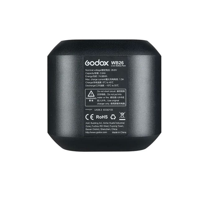 Với công suất 74.88Wh, pin WB26 được thiết kế tương thích với đèn Godox AD600pro, tối ưu hóa cho các buổi chụp hình di động.