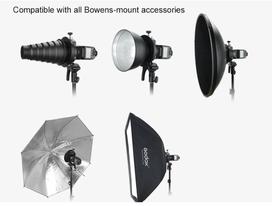 Bạn có thể gắn hầu hết các nhãn hiệu đèn flash speedlight vào mặt sau của giá đỡ theo chiều ngang hoặc chiều dọc và giá đỡ S2 cũng có một khối có thể tháo rời cho các hệ thống đèn flash AD200Pro và AD400Pro lớn hơn. Ở phía trước, một vòng điều chỉnh tốc độ tương thích với Bowens cho phép bạn gắn các phụ kiện gắn Bowens như softbox và dù để điều khiển ánh sáng của bạn.