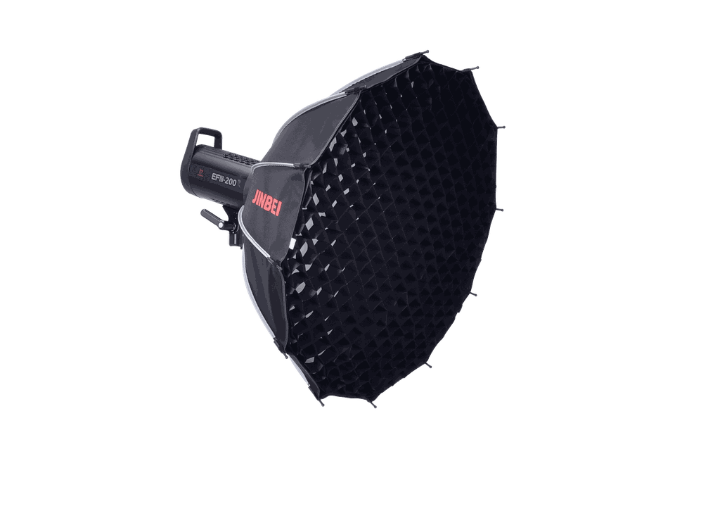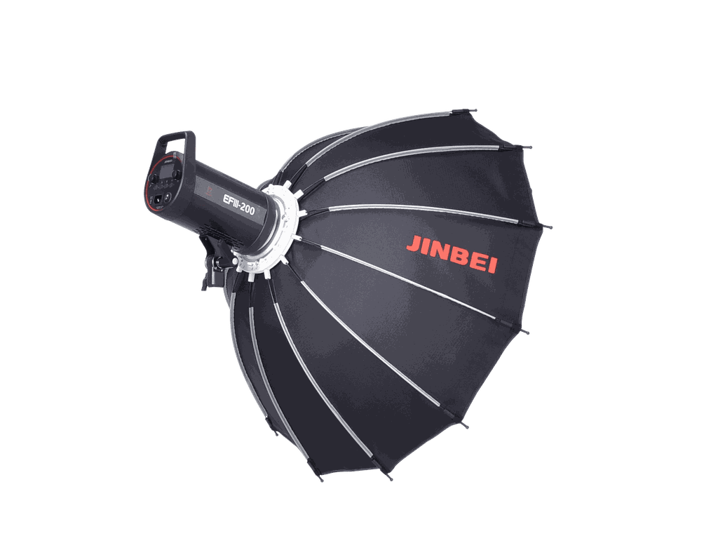 Softbox beauty dish Jinbei thao tác nhanh kích thước 65cm kết hợp lớp vải chất liệu polyester cao cấp sẽ làm tản đều giúp ánh sáng chiếu ra sẽ dịu nhẹ và mềm hơn. Softbox Jinbei thao tác nhanh 12 que phù hợp cho các dòng đèn led, đèn flash quay phim, chụp ảnh sử dụng ngàm bowen