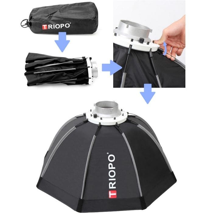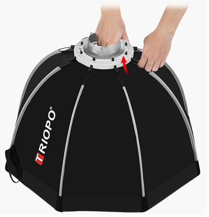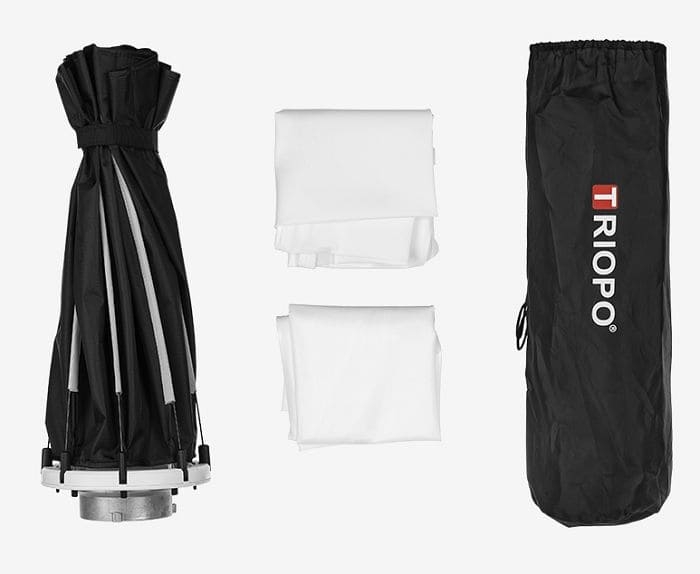 Softbox Triopo K2-120 thao tác nhanh thao tác nhanh có 2 lớp vải mềm, bên trong được tráng bạc có thể làm cho ánh sáng đều hơn, phù hợp với nhiều kiểu chụp đèn flash trong studio. Thiết kế dạng dù rất thuận tiện khi di chuyển. Rất phù hợp để chụp ảnh thời trang, ảnh chân dung và ảnh sản phẩm cỡ trung bình đến lớn.