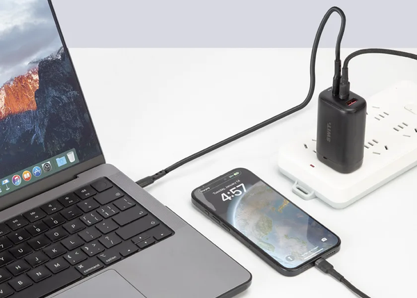 Sạc 3 Thiết Bị Cùng Lúc: Trang bị 2 cổng USB-C và 1 cổng USB-A, bạn có thể sạc cùng lúc laptop (45W), tablet (10W) và điện thoại (10W) một cách thông minh và hiệu quả.