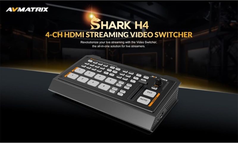 Với mức giá vừa phải nhưng vẫn đảm bảo đầy đủ các tính năng chuyên nghiệp cùng với chất lượng video có độ phân giải cao, bàn trộn Avmatrix Shark H4 đang được nhiều người dùng săn đón và ưa chuộng. Các chức năng cơ bản của bàn trộn Shark H4 có thể nói đến như: Đầu vào 4×HDMI, hỗ trợ tự động phát hiện, đầu ra đa dạng, bộ trộn âm thanh, thư viện phương tiện: 39 mẫu mặc định; 16 hình ảnh được nhập; 16 hình ảnh được chụp; 2 bộ tạo màu, nhập và xuất cấu hình khách hàng, FTB/ MUTE/ STILL/ GPIO để kiểm đếm,…