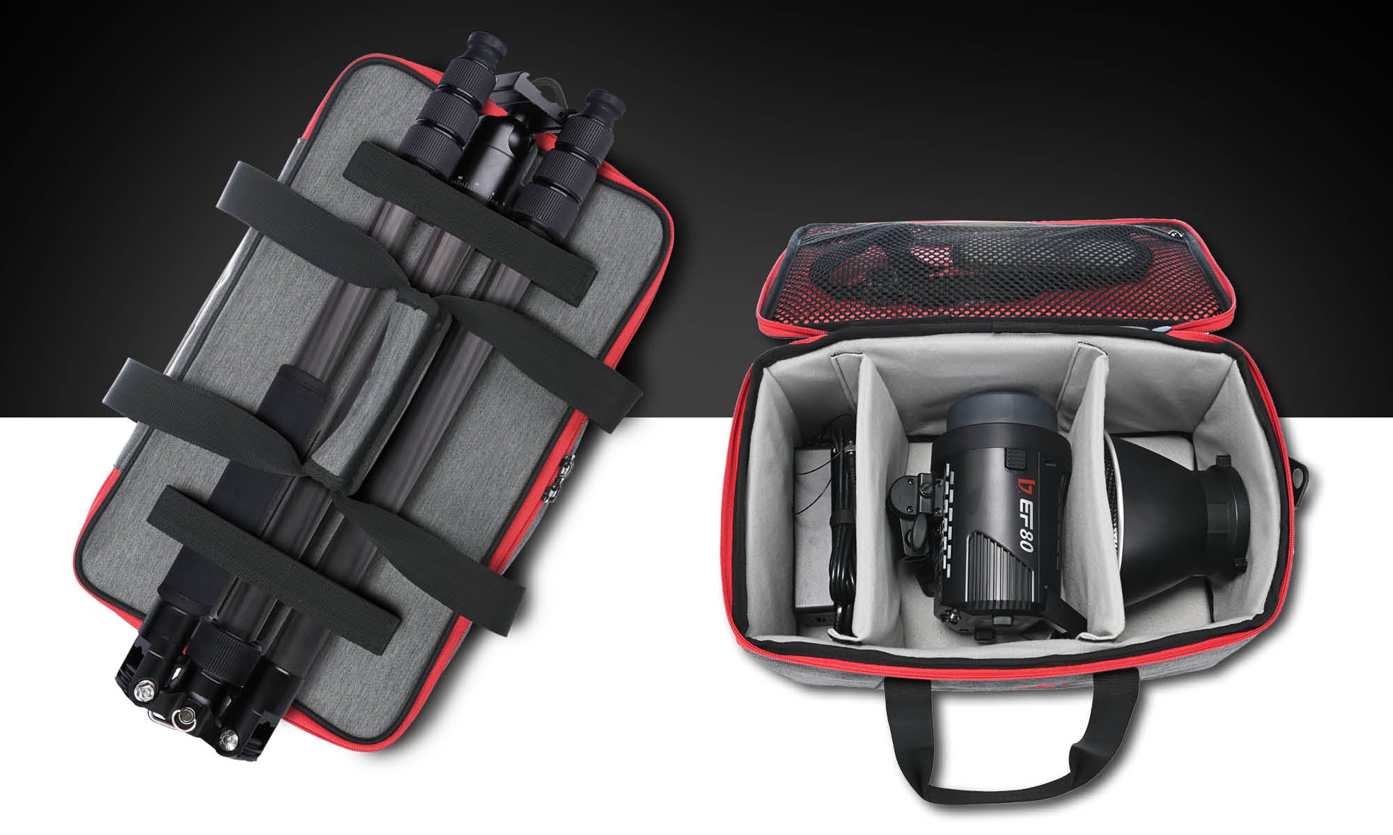 Túi có hai ngăn có thể điều chỉnh, cho phép thiết kế nội thất riêng. Sắp xếp thiết bị theo nhu cầu của bạn và đảm bảo cất giữ đèn ổn định EF một cách an toàn và có chống sốc