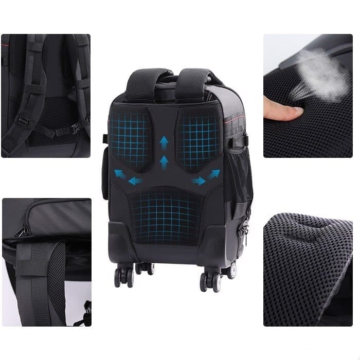 Được trang bị tay kéo và 4 bánh xe, Eirmai DC420T có thể di chuyển nhẹ nhàng trên các địa hình bằng phẳng, giúp người dùng ko tốn quá nhiều sức khi phải ôm theo 1 lượng lớn đồ máy ảnh và ống kính. Khi ở chế độ kéo tay, bạn cũng có thể giấu gọn 2 quai đeo vào ngăn đặc thù ở phía sau vali, để khi nào muốn đeo, hoặc đi trên địa hình ko thể kéo tay, thì lại mở ra và đeo lên vai. Hãy yên tâm là hệ thống quai đeo trợ lực và phần lưng thoáng khí sẽ tạo cảm giác thoải mái, ít nhức mỏi, kể cả khi bạn phải đeo trong thời gian dài. Thanh kéo tay của vali là kim loại với độ bền cao và khả năng chịu lực tốt.