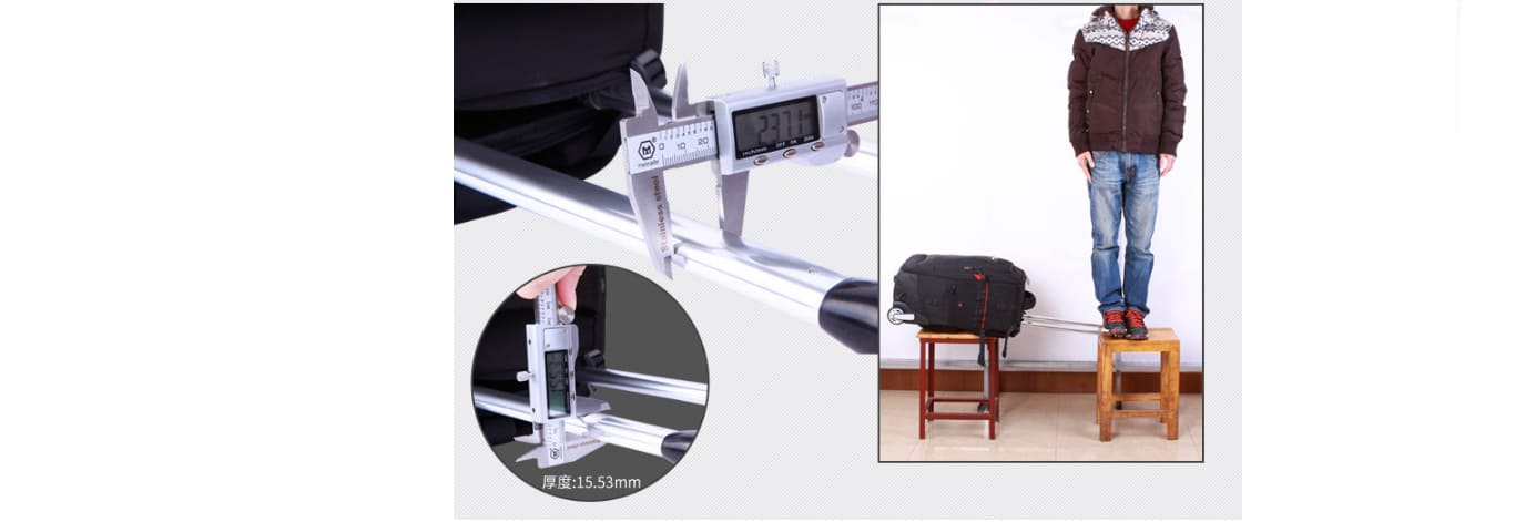 Thiết kế tay kéo cực kì chắc chắn được làm bằng hợp kim nhôm . Với bề dầy thanh kéo vali : 23.71 x 15.53 ( mm ) .
