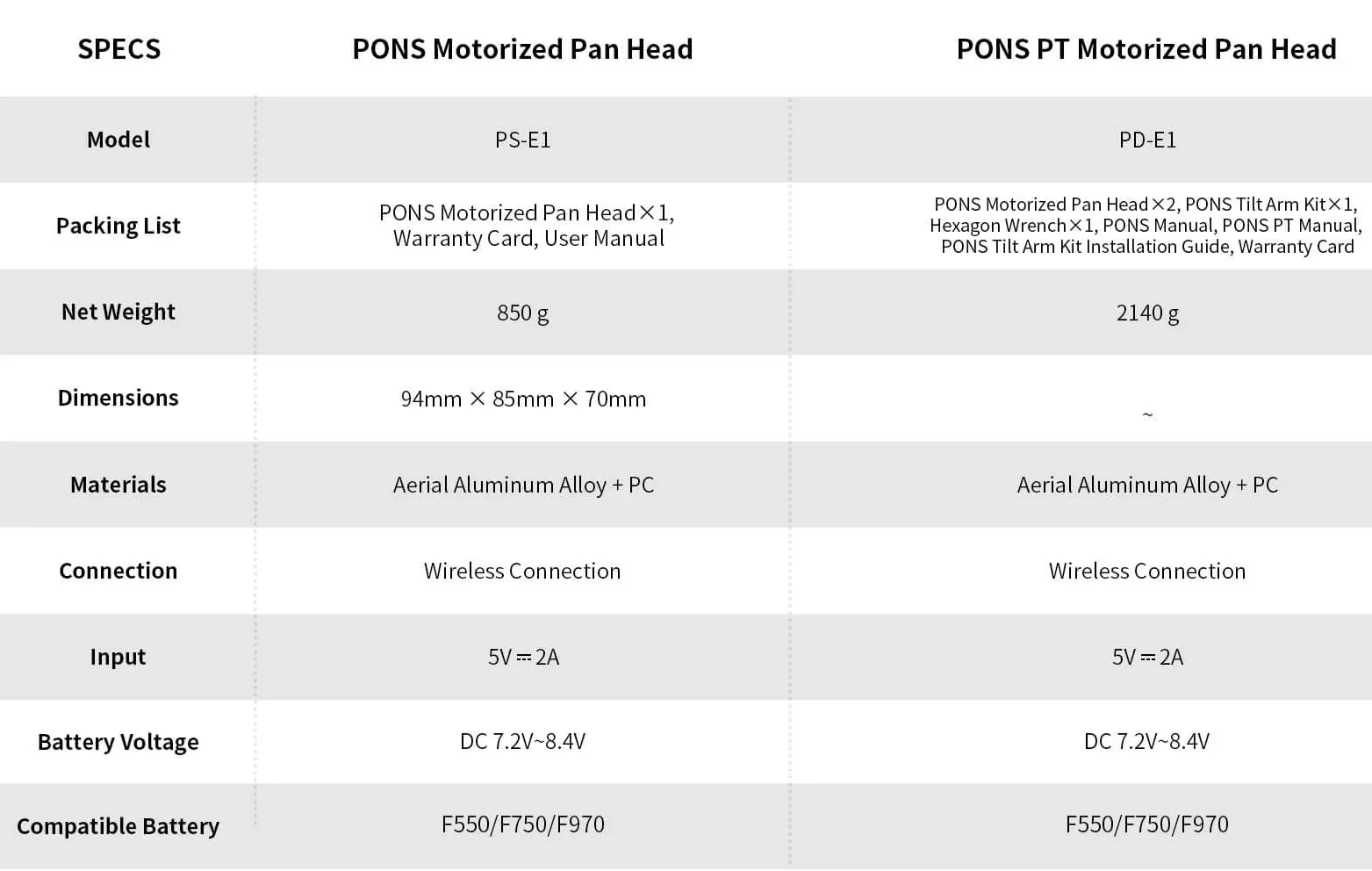 Zeapon PONS PT Motorized Pand Head thường được dùng với:
